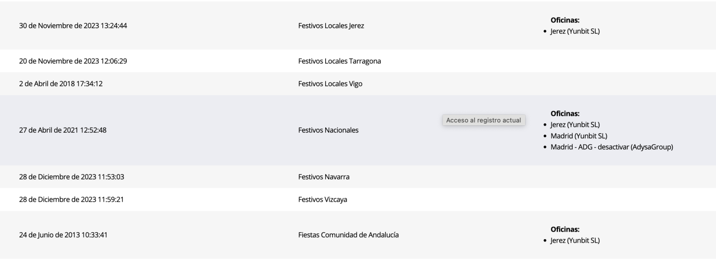 También se podrán crear calendarios específicos para los festivos propios de grupo de empleados en particular.