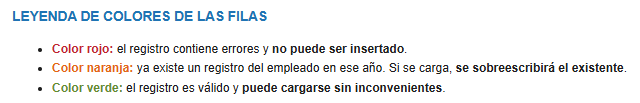 Además, la pantalla incluye una leyenda explicativa de los colores de las filas, que nos ayuda a identificar rápidamente el estado de cada registro: