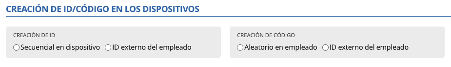 - Creación de ID/Código en Dispositivos: Opciones para generar identificadores o códigos: