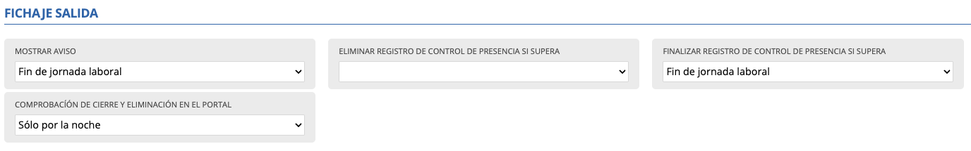 Si el registro de control de presencia no se rellena ni desde el back, ni desde e portal; existe la posibilidad de configurar la hora de cierre. Esto se ejecutará de la siguiente manera: