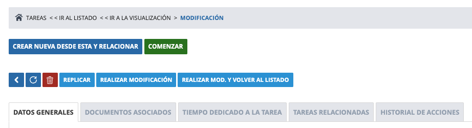 - Listado de TAREAS RELACIONADAS de la propia tarea