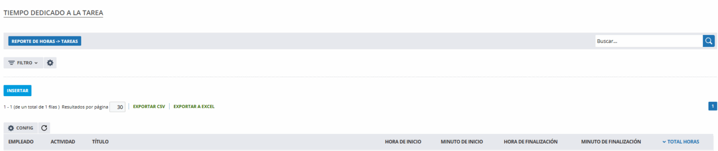 Desde el listado podrás insertar nuevas tareas, dando al botón "Insertar".