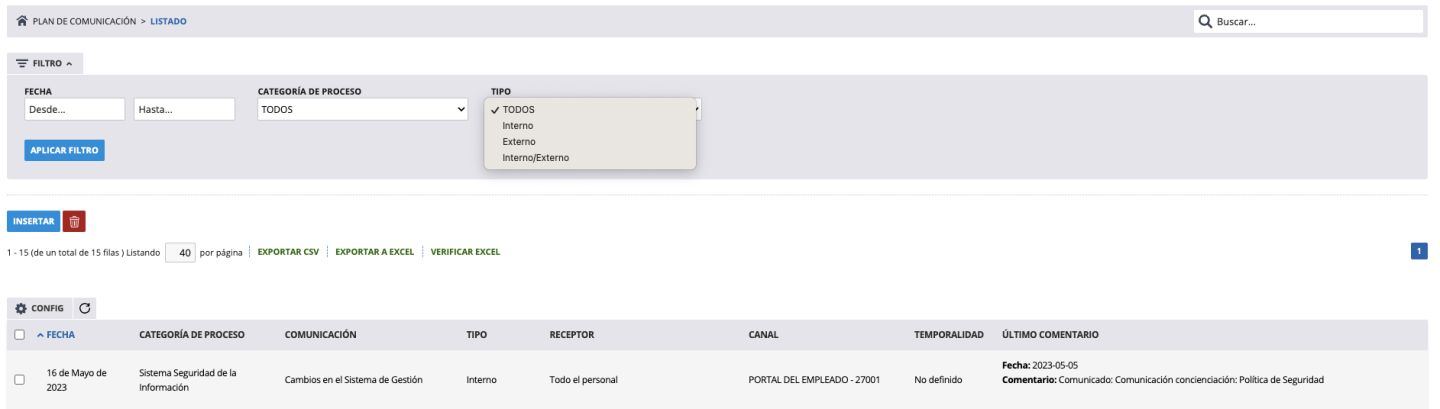 Desde el gestor de plan de comunicación de Yunbit podemos mantener registro y seguimiento del plan de comunicación de la compañía.