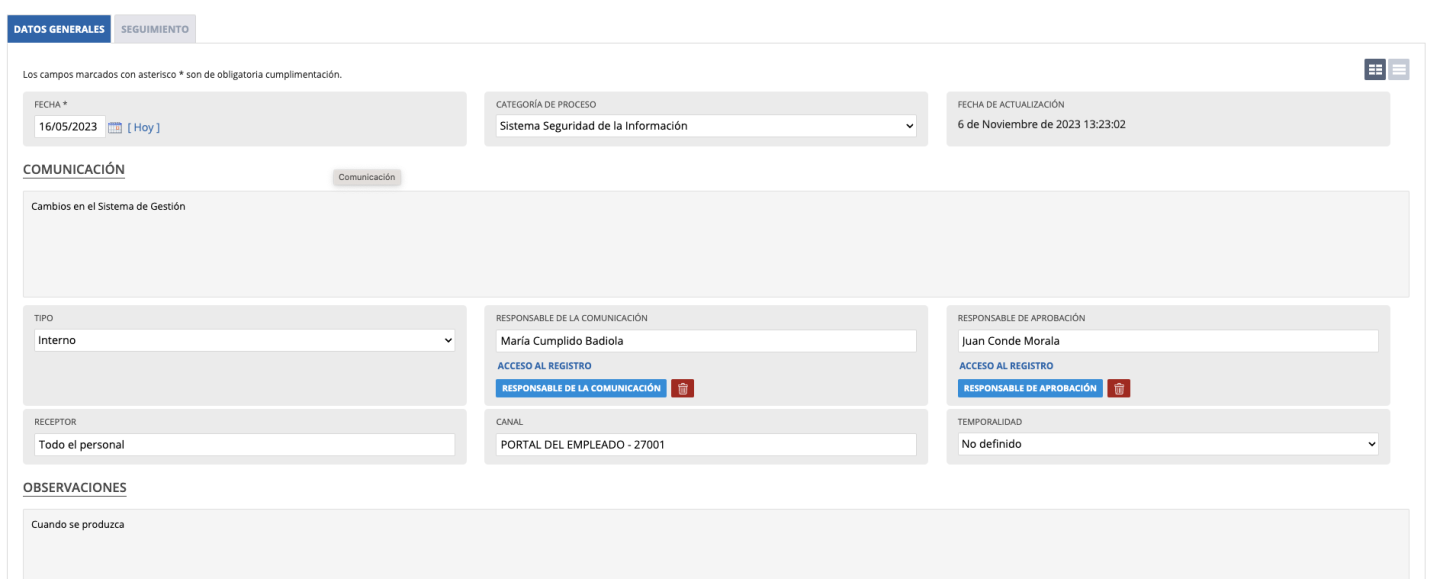 La ficha del registro tiene dos pestañas, donde podremos llevar registro de la siguiente información: