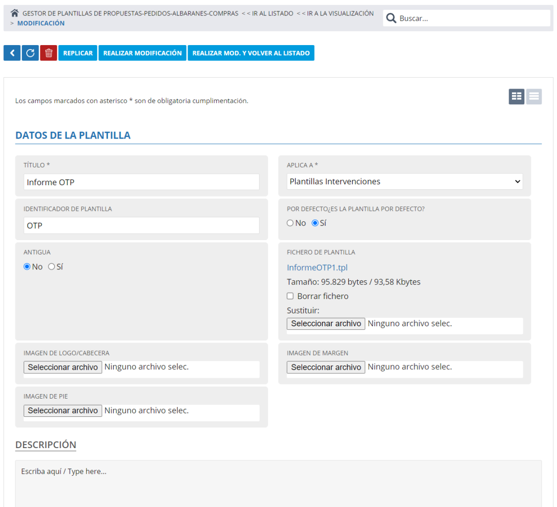 Alta de plantillas de informes