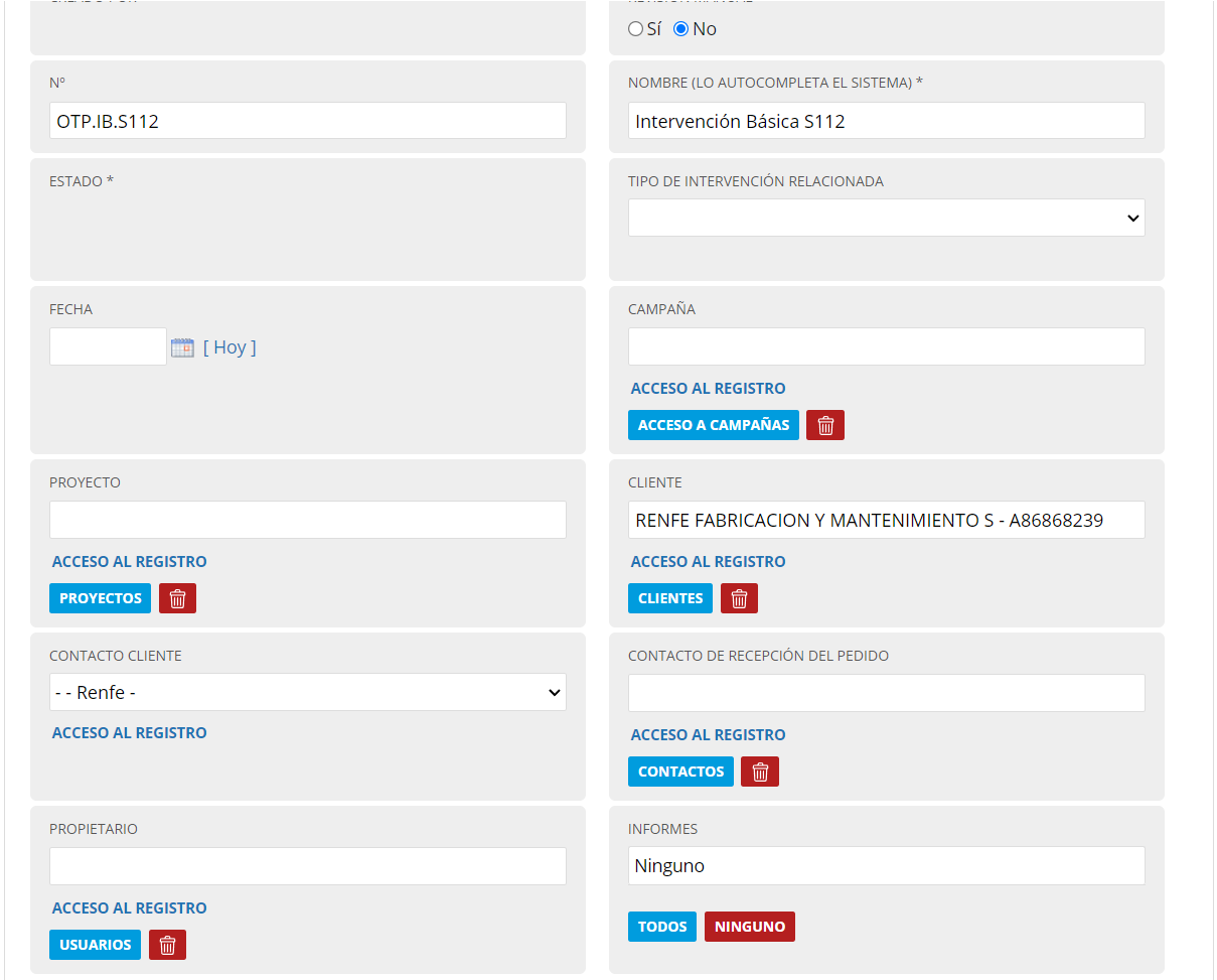 Ya que cada intervención puede tener diferentes informes podemos vincular los que aplican desde sus plantillas de intervención.