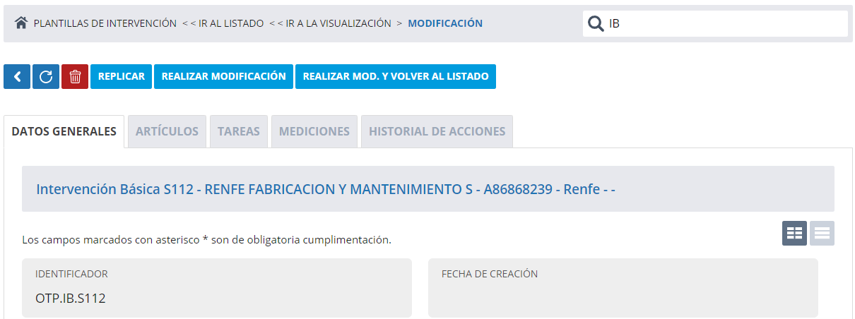 Accedemos a la plantilla de intervención y en la pestaña Datos Generales encontramos el seleccionable múltiple de Informes, los informes que seleccionemos en la Plantilla de intervenciones estarán posteriormente disponibles en la Intervención.