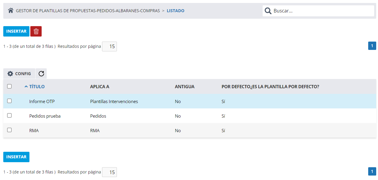 Podemos gestionar estos informes desde SETUP > Plantillas > Plantillas de Pedido y Órdenes de Compra