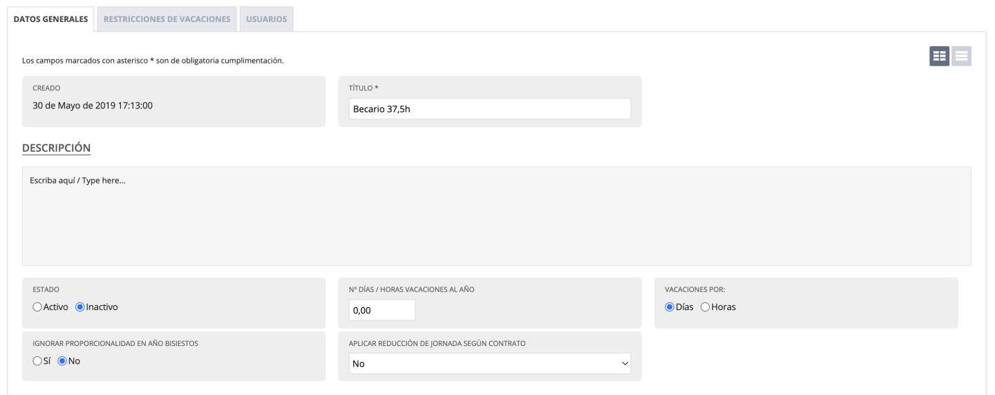 - Nº de días de vacaciones al año: controla cuántos días puede solicitar el empleado.