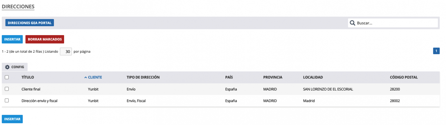 Mediante el botón insertar se insertarán tantas como necesitemos; por ejemplo, sede central, delegación "x", etc.