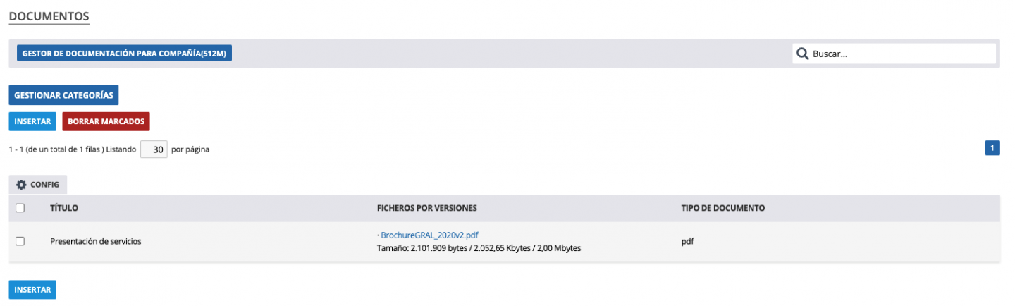 Donde se podrán insertar de forma manual los documentos relacionados con esta empresa: p.e. contratos, acuerdos, hojas de pedido, ...