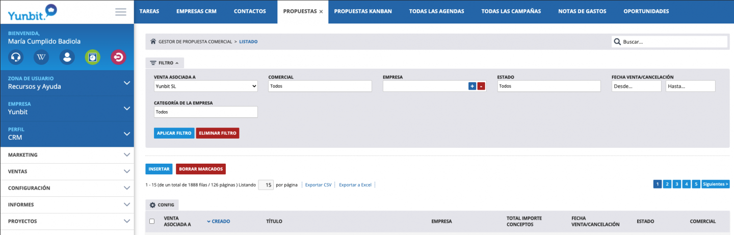 Aquí podremos visualizar las Propuestas cuando se trata de una plataforma del sector servicios