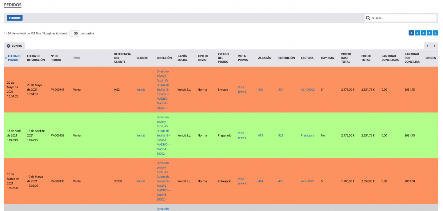 - Albarán: implica que el albarán vinculado a la expedición esté desglosado por pedido.