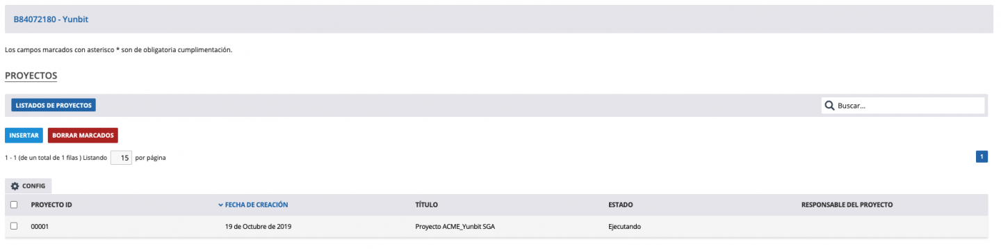 En esta pestaña aparecerá el listado de proyectos asociados a esta empresa.