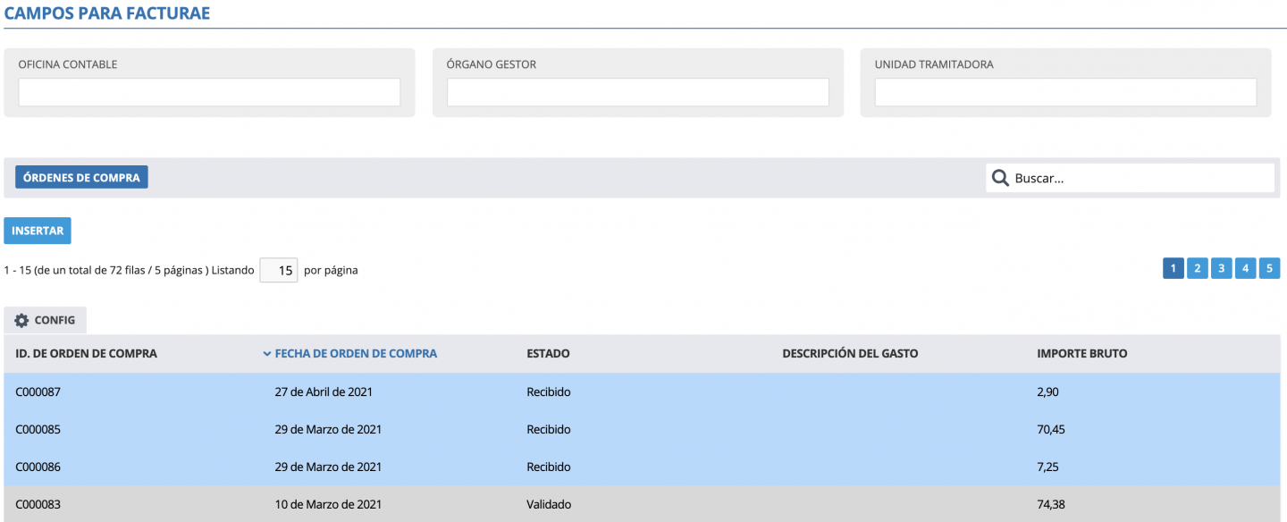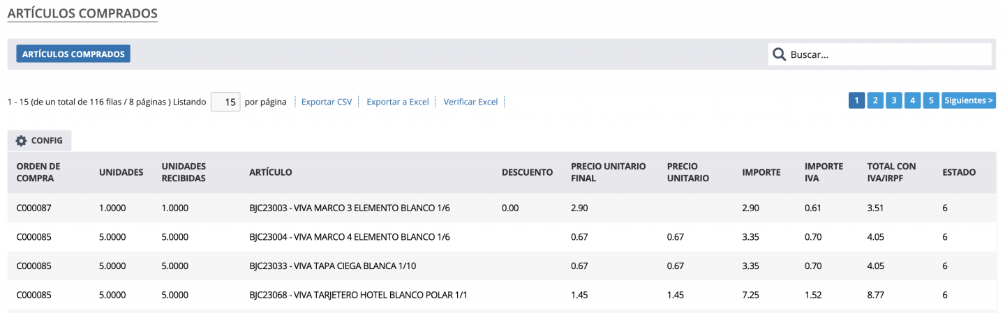 Aquí aparecerá las órdenes de compra asociadas a esta empresa.