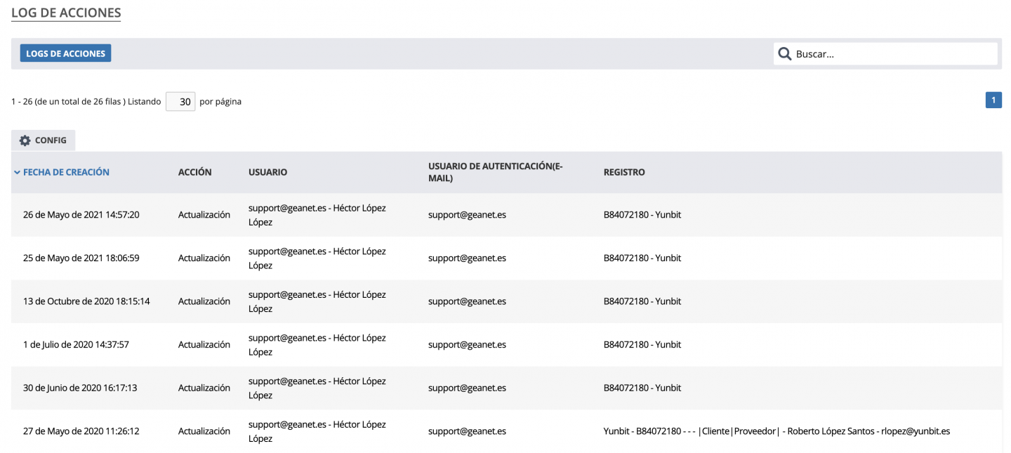 Aquí tendremos registro de los envíos realizados a los contactos relacionados con esta empresa: facturas, propuestas, seguimientos, ...