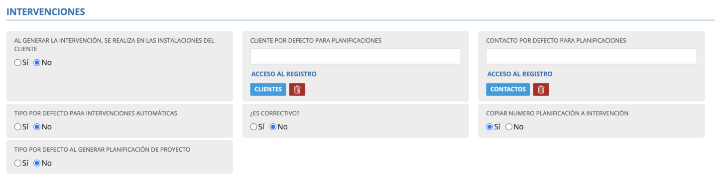 - Contacto por defecto para planificaciones