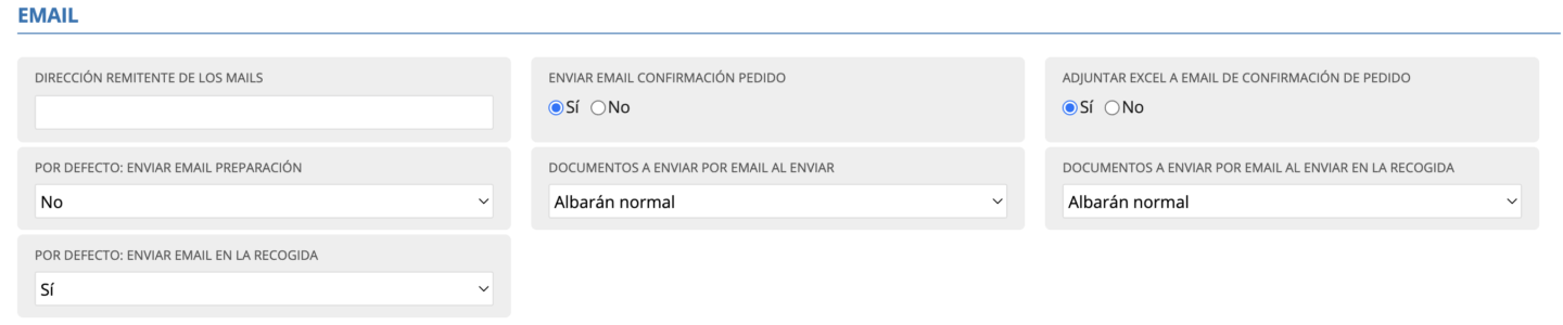 - Por defecto: enviar email en la recogida