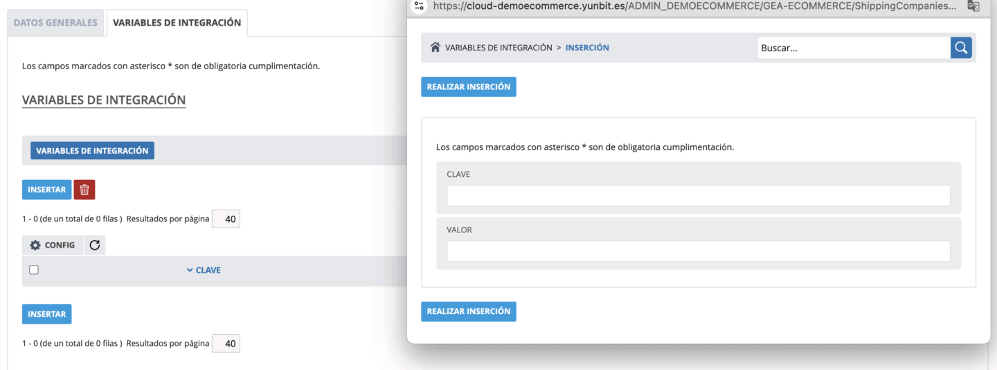 - Pestaña variables de integración
