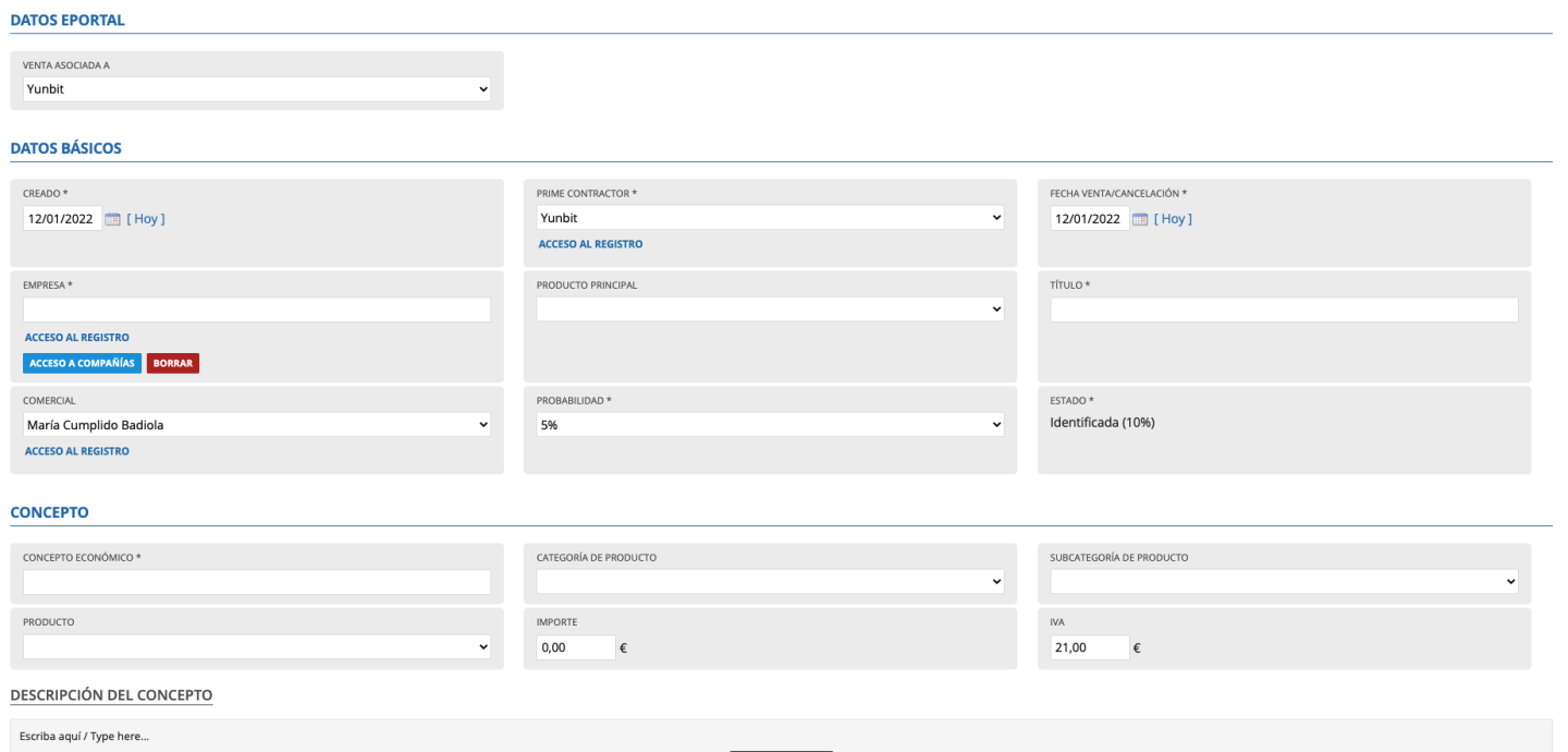 - Venta asociada a: indicamos el metagrupo que corresponda.