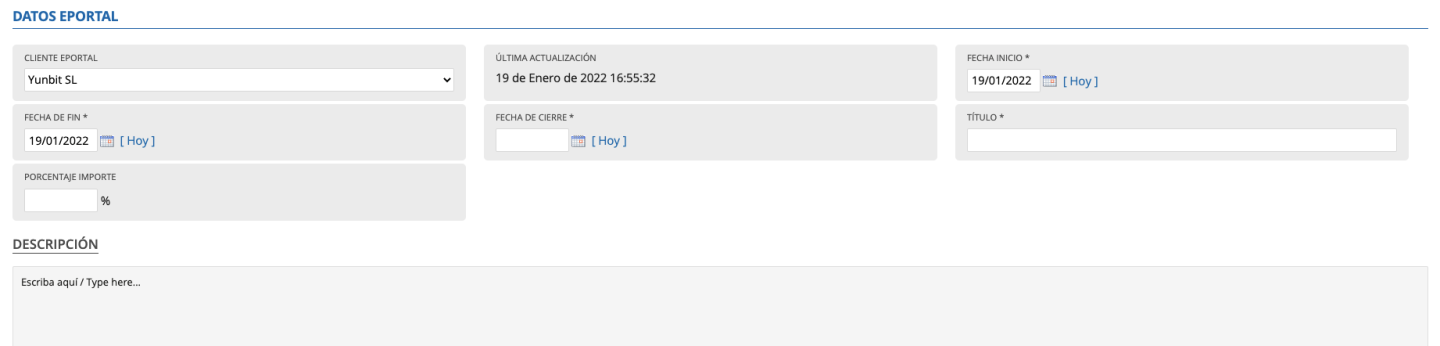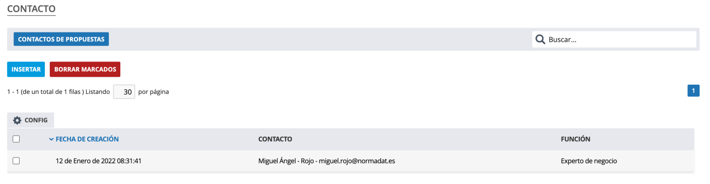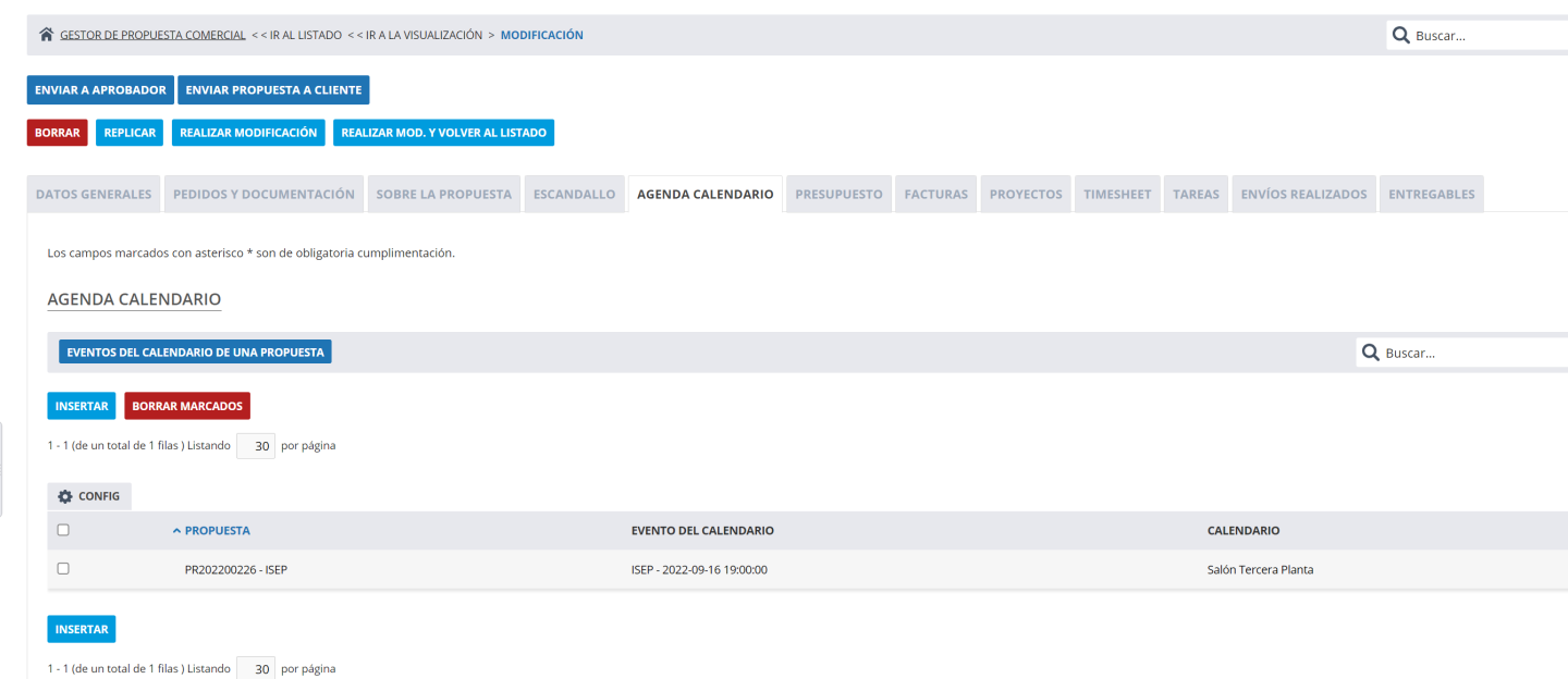 Esta pestaña está visible desde el momento en que damos "Insertar" a al listado de propuesta. Una vez cumplimentados los datos nos aparecerán el resto de campos y pestañas:
