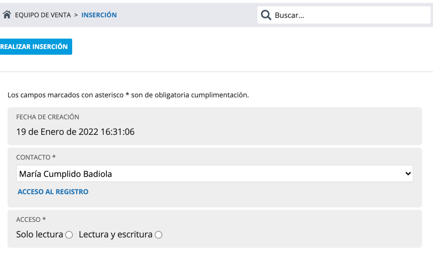 - Aquí podremos listar las personas que están encargadas de la venta y cómo pueden acceder a esta propuesta: