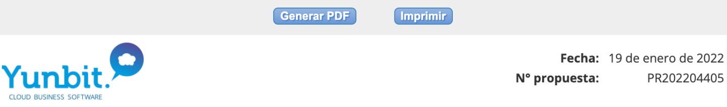 - Vista previa: enlace de visualización de la propuesta, una vez abierto generaremos PDF o imprimiremos: