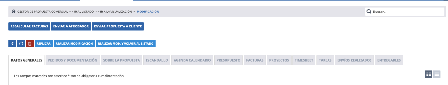 Vemos en detalle las funcionalidad de la ficha de la propuesta y sus posibles pestañas de la ficha de la propuesta: