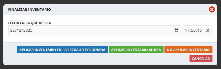 Al terminar el inventario el sistema nos mostrara las siguientes opciones: