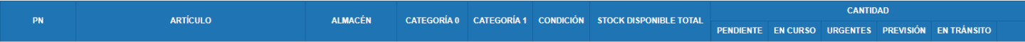 - Pendiente: Total de artículos que tenemos que comprar, los pendientes para pedidos más los necesarios para mantener el stock óptimo configurado.