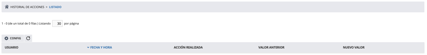Historial de acciones