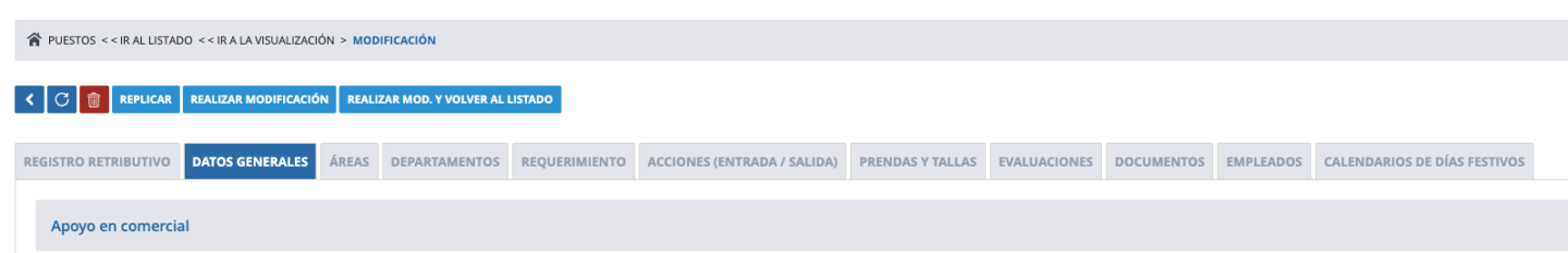 Para administrar estos datos, hay que acceder desde el perfil de Responsable de RRHH >> Organización de la empresa >> Puestos.